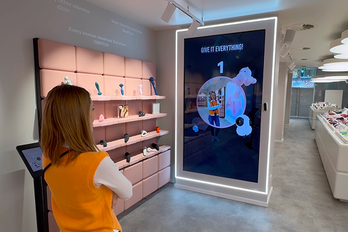 For the Satisfyer store, our team developed an AR mirror as an interactive digital experience for in-store visitors. We were fully responsible for delivering the solution — from the physical constructive design and technical implementation to the interaction scenarios and the design of the visual frames. The completed installation was delivered to Cologne, where the store is located.