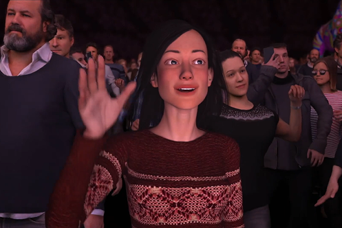 Detailed 3D modeling of the stadium and audience was created. A stage with a real artist and musicians was integrated, and show VFX effects were added to enhance emotions and the scale of the event.